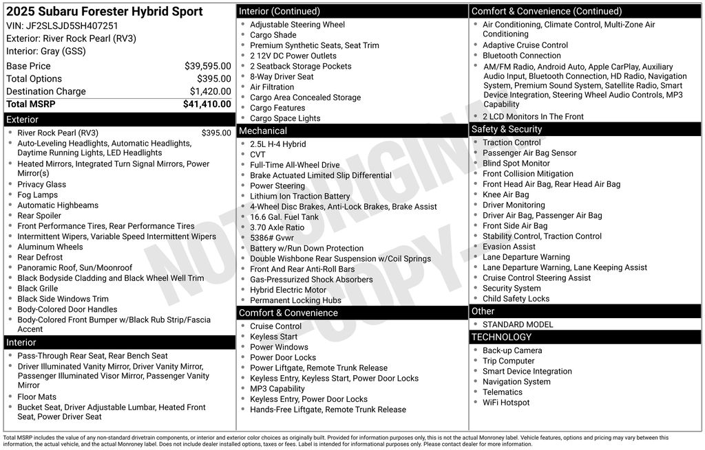 Don't miss your chance to experience the exceptional quality, performance, and value of this 2025 Subaru Forester Hybrid Sport. Visit our showroom today and let us help you make this remarkable vehicle your own.