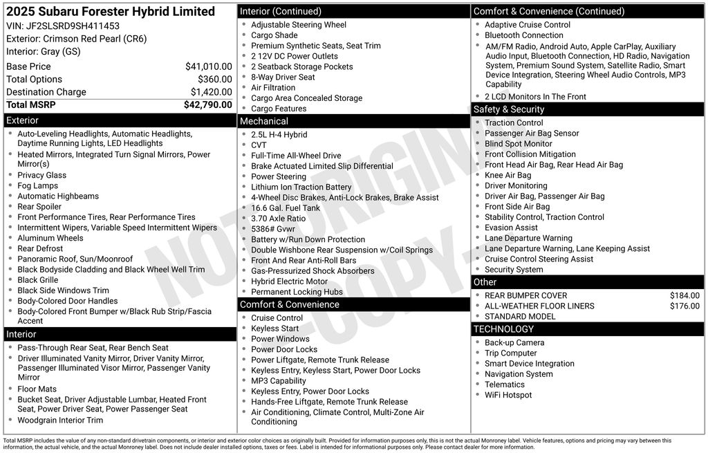 Clean CARFAX. Crimson Red Pearl 2025 Subaru Forester Hybrid Limited AWD Lineartronic CVT 2.5L 4-Cylinder DOHC 16V 2.5L 4-Cylinder DOHC 16V.