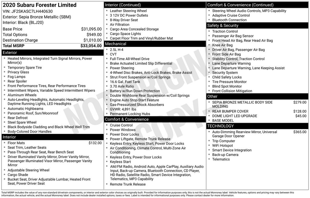 This 2020 Subaru Forester Limited is an exceptional pre-owned vehicle that offers a compelling blend of style, capability, and advanced technology. With its sleek Sepia Bronze Metallic exterior and spacious, well-appointed interior, this Forester is sure to turn heads and provide a comfortable, confident driving experience.