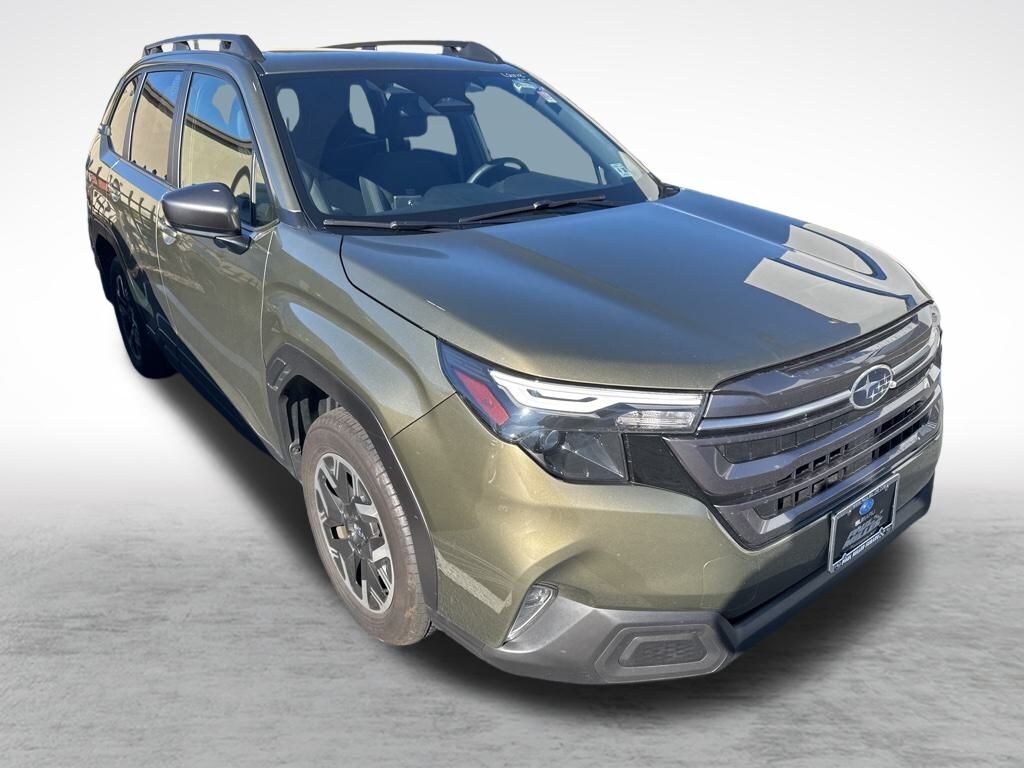 Priced below KBB Fair Purchase Price! Clean CARFAX. Certified. Autumn Green Metallic 2025 Subaru Forester Premium AWD Lineartronic CVT 2.5L 4-Cylinder DOHC 16V Non Smoker, ***This is a Retired Service Loaner***, Auto High-beam Headlights, Automatic Emergency Steering, Blind-Spot Detection (BSD)/RCTA System, Exterior Parking Camera Rear, Front dual zone A/C, Heated door mirrors, Heated Front Bucket Seats, Power moonroof: Panoramic, Power Rear Gate, Power Rear Gate & Blind Spot Detection w/RCTA, Premium Textured Cloth Upholstery, Steering wheel mounted audio controls.
